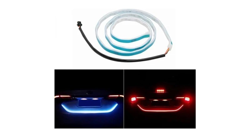 - ال ای دی به طول ۱۲۰ سانتی متر - دارای نور ثابت آبی رنگ در صورت روشن بودن چراغ کوچک - دارای نور قرمز در موقع ترمز کردن - دارای نور زرد رنگ چشمک زن در صورت زدن راهنما - مناسب برای تمامی خودروها