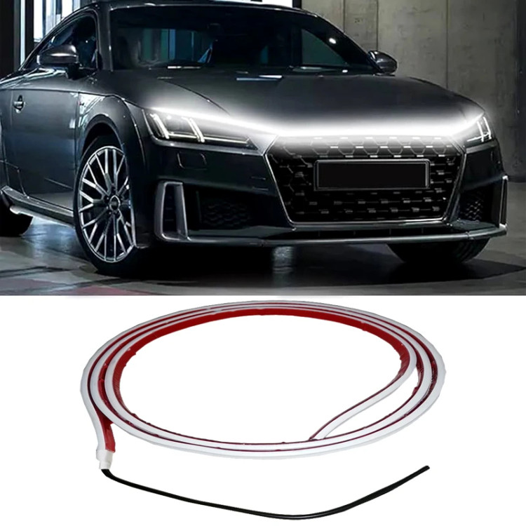 فلکسیبل کاپوت خودرو یکی از چراغ های بسیار کاربردی برای زیباسازی خودرو می باشد که نمای جذابی به خودروی شما می دهد. این چراغ بطول 120 سانتی متر می باشد که میتواند برای زیر کاپوت اکثر خودروها مورد استفاده قرار گیرد. همچنین این چراغ دارای عمر طولانی، بدون ایجاد گرما، ضد آب و انعطاف پذیر است. نصب چراغ بسیار ساده بوده و کافیست کاپوت خودرو را باز نموده و محل نصب از گرد و خاک تمیز شده سپس روکش چسب را برداشته و در محل مناسب نصب شود. سیم منفی (تک رنگ) به بدنه متصل می شود و سیم مثبت (دو رنگ) به سیم مثبت چراغ نور پایین یا چراغ سکن متصل خواهد شد. برای ایجاد جلوه بهتر در شب به هم راستایی لبه چراغ و کاپوت دقت نمایید.